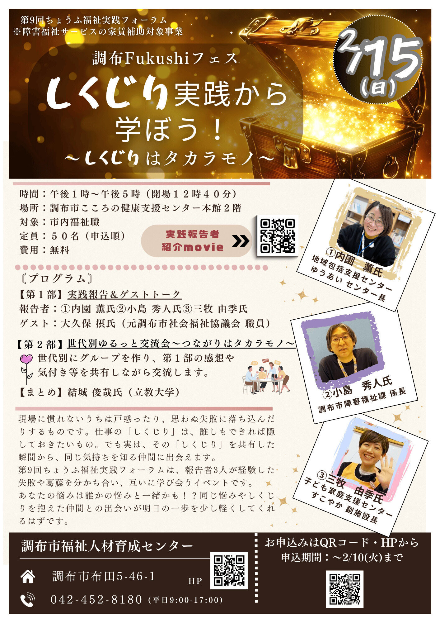 第9回ちょうふ福祉実践フォーラム 調布Fukushiフェス しくじり実践から学ぼう!~しくじりはタカラモノ~開催決定!!